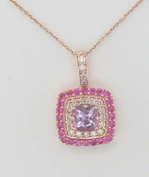 Maharaja Collection Amethyst, Pink Sapphire, and Diamond Pendant Necklace in 14K Rose Gold (2.58ctw)