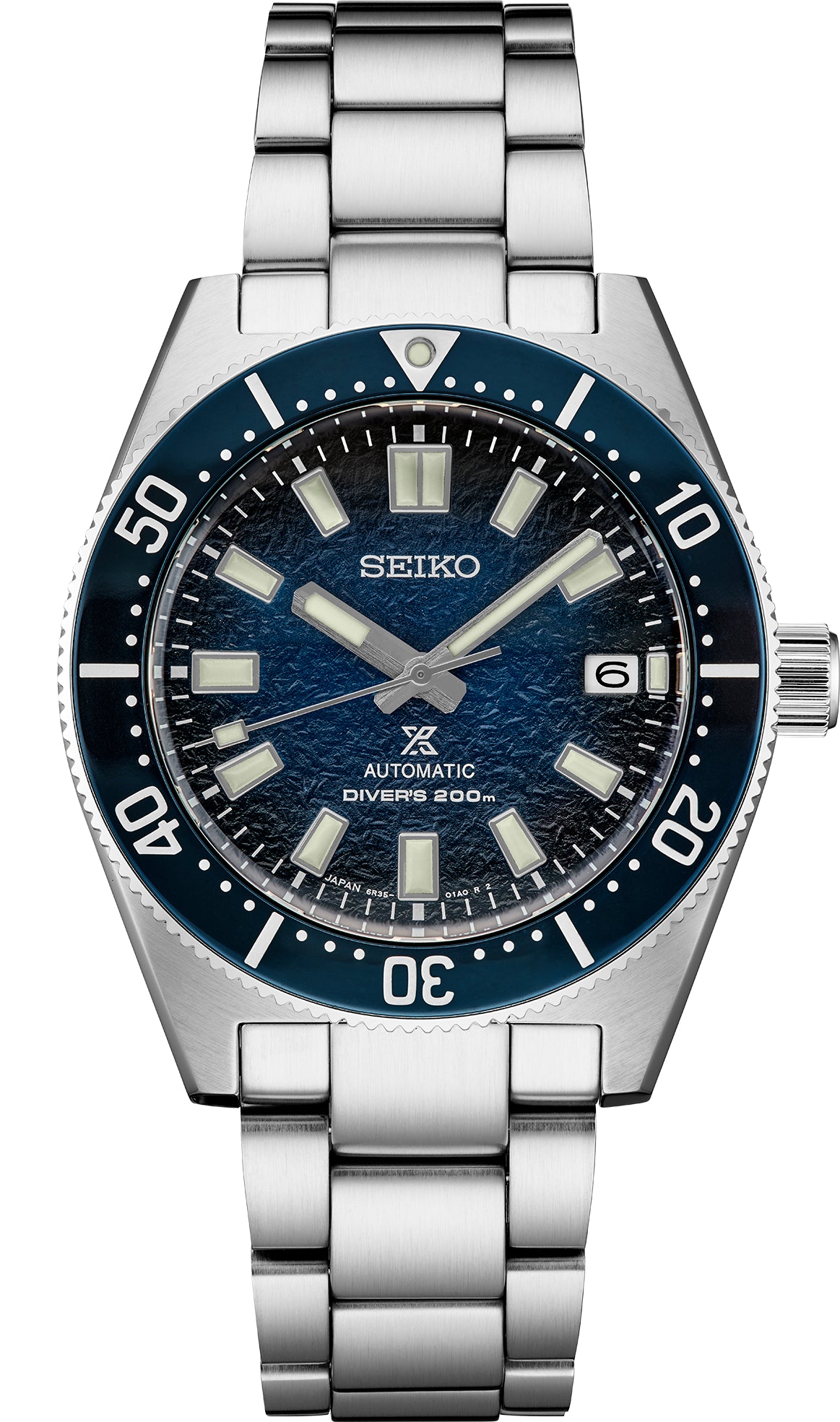 - Deep blue dial patterned and gradated to suggest the icy surfaces of the perilous, yet beautiful, Alaska Moulins